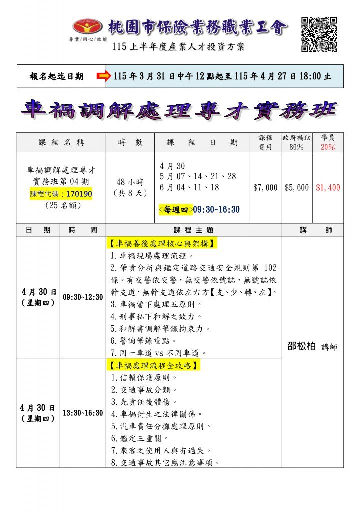 車禍調解處理專才實務班第04期
