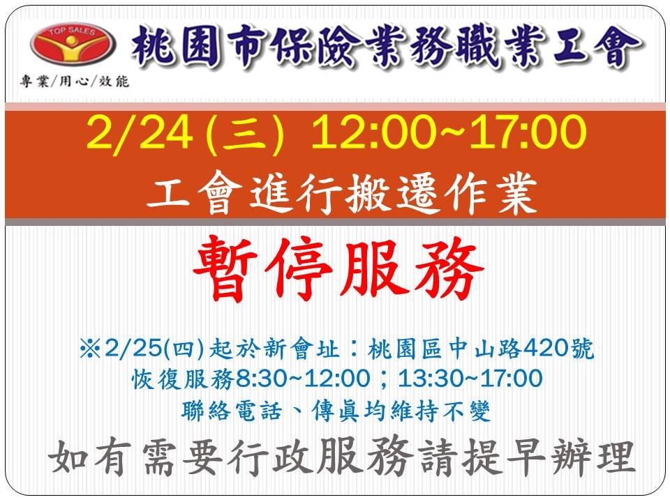 2/24(三) 工會搬家作業,12:00~17:00暫停服務喔!