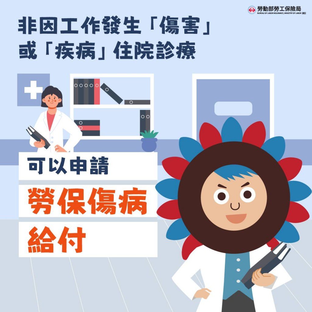 非因工作發生「傷害」或「疾病」住院診療,可以申請「勞保傷病給付」喔!