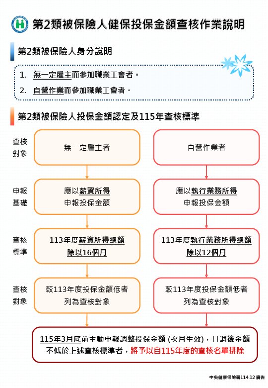 115年健保署覈實113年健保投保身分及投保金額公告