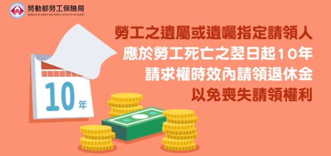 依照勞工退休金條例及相關函釋規定,勞工於請領退休金前死亡,其遺屬或遺囑指定請領人應於勞工死亡之翌日起10年內申請死...